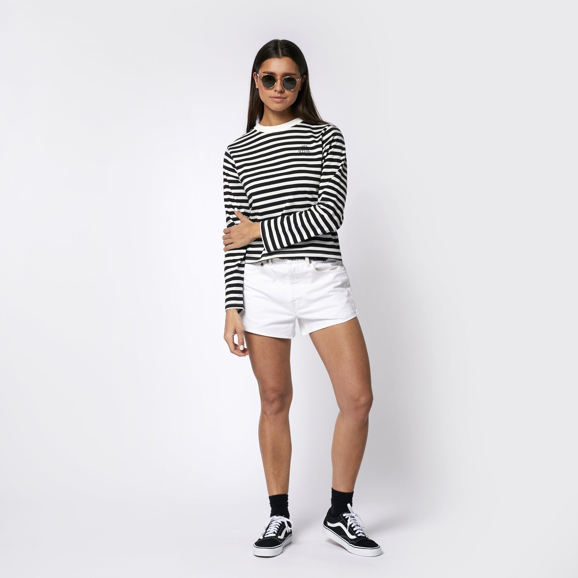 Our striped long sleeve tee, built from 100% organic cotton in a slightly cropped fit. We've rounded this classic off with a Mystic print at the chest.