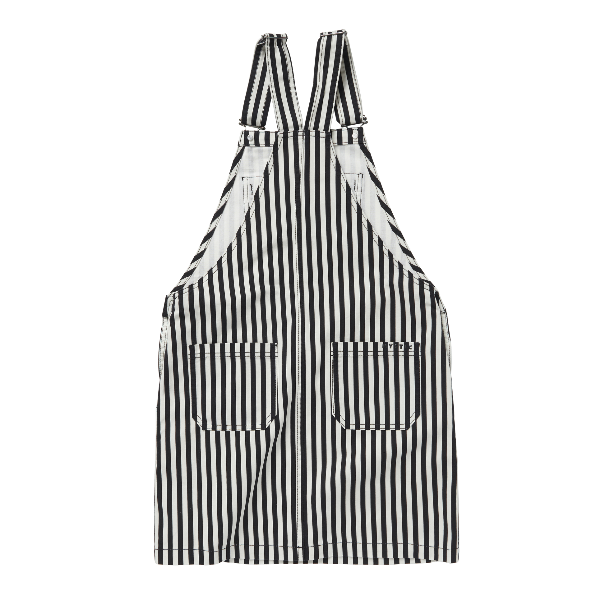 The Dawn bib dress is crafted from hardwearing twill, perfect for layering over tops and t-shirts. Available in black or a stripe, the Dawn dress features a zip pocket at the chest and adjustable straps.
