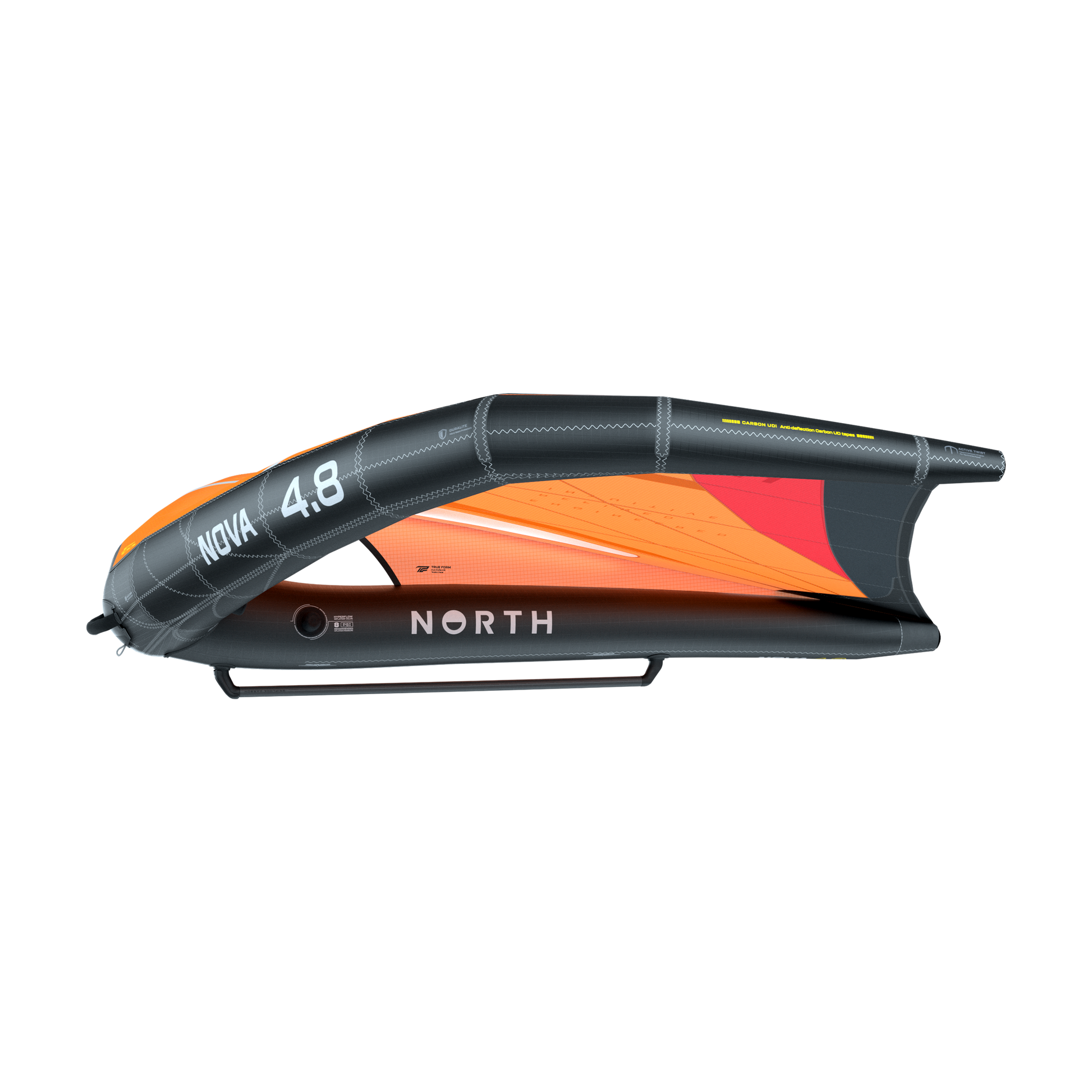 A balanced, easy-to-use all-round wing with a wide wind range & light, intuitive handling ideal for freeride wing foiling - in flatwater, chop & surf. The Nova has instant up-&-go with direct drive forward. It's a lightweight, agile, & streamlined wing that feels light in your hands & accelerates easily without pumping. Its GripLock Carbon Boom enables freedom in hand positioning & smooth transitions. Chasing stiffness in the inflated airframe, we've placed Carbon UDi inside the reduced diameter LE, for a reactive airframe that snaps back into shape faster. Available in six sizes, you're covered for every condition. The 7m is a cost-effective & durable option for light wind.