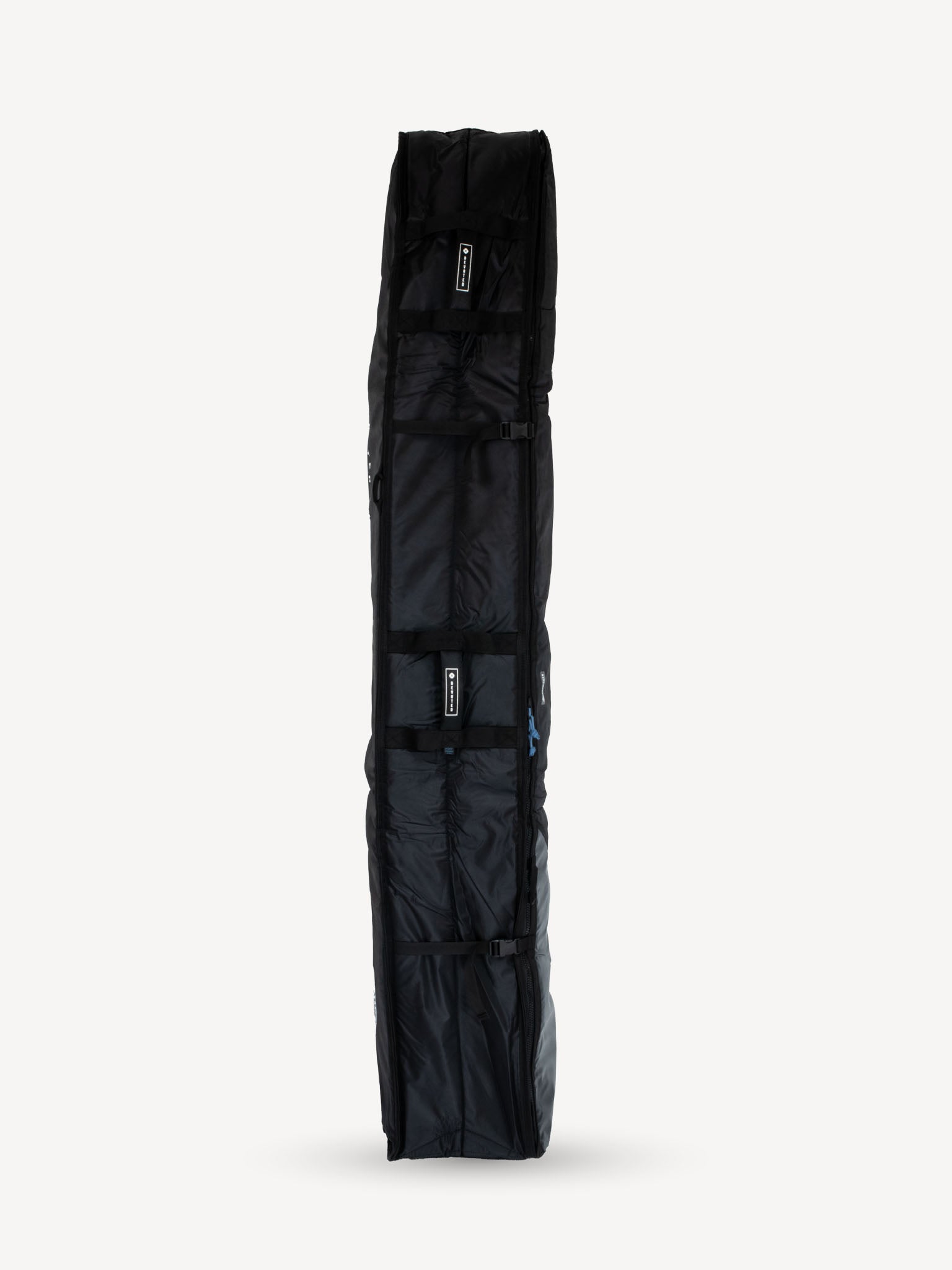 Ensure the safety of your full quiver (up to 4 boards) across various destinations with our Devoted Travel 10mm Quad Bag. Featuring 10mm foam padding with reinforced nose, tail and rail as well as DEVO-TECH fabrics, every board enjoys thorough protection. Inside tie-downs secure your boards in place, maintaining a compact arrangement. Padded handles and shoulder straps provide comfortable carrying. A wide flip-lid opening simplifies the packing process.