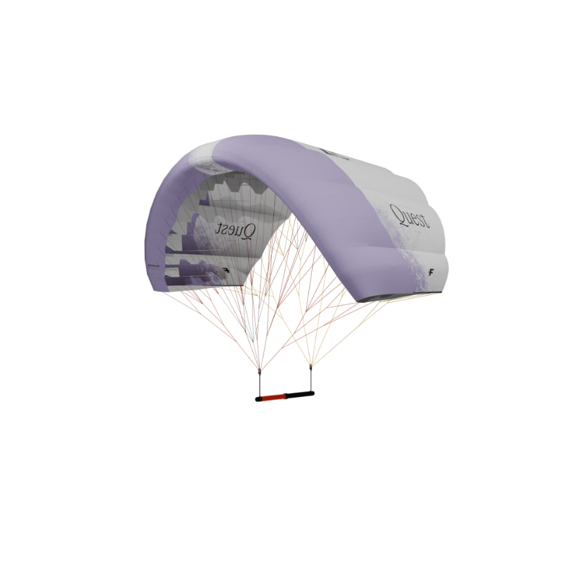 The QUEST’s softer canopy, shorter lines and simplified panel layout, create a pocket wing that’s very light, smooth in the turns, and painless to stow and redeploy. With its outstanding depower, easy pumping ability and great stability, the QUEST always feels steady and predictable, even when conditions get rough. It may not deliver as much speed as the FRIGATE, but it makes up for it with control and comfort that lets you ease effortlessly into the bumps. The QUEST introduces a new Double Dynamic Bridle System that makes the pocket wing feel more direct, easier to handle, and that minimizes the risk of tangling. It also delivers smooth, intuitive power control with precise feedback through the bar. Beginners will appreciate the extra back-hand feel when sheeting in and effortless depower that simplifies their first sessions, while experienced riders will enjoy a great compromise between lightness and high-end performance, as well as the pocket wing’s natural balance. The new ergonomic bar improves grip and comfort, while keeping everything simple and efficient to give you plenty of confidence and control. This vertical bar also further increases the maximum depower range of the QUEST, allowing riders to control the pocket wing more effectively and intuitively, as well as comfortably ride across a wide wind range even without a harness line. Compact, light and forgiving, the QUEST strips everything back to what really matters: it’s all about setting off and seeing where the swell takes you.