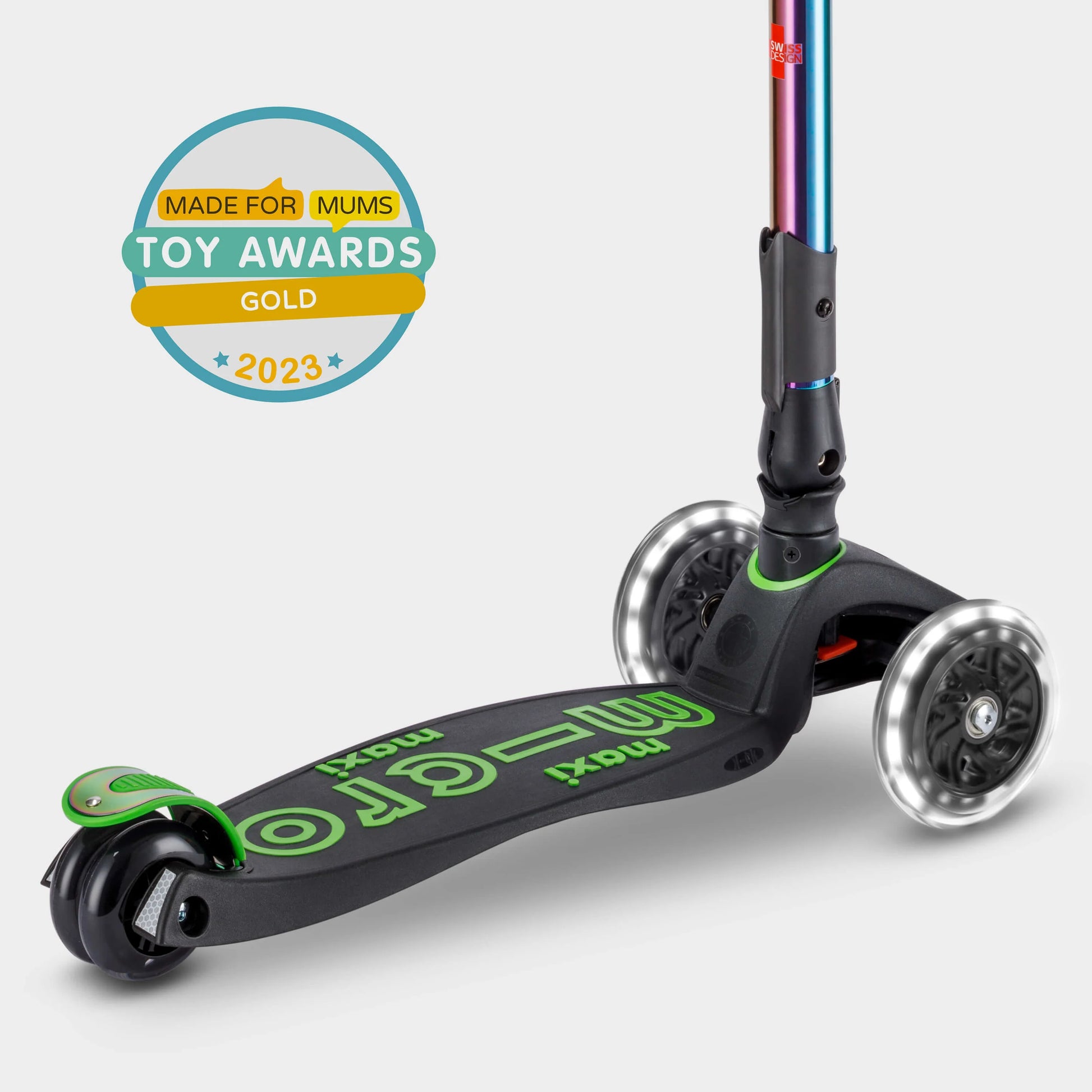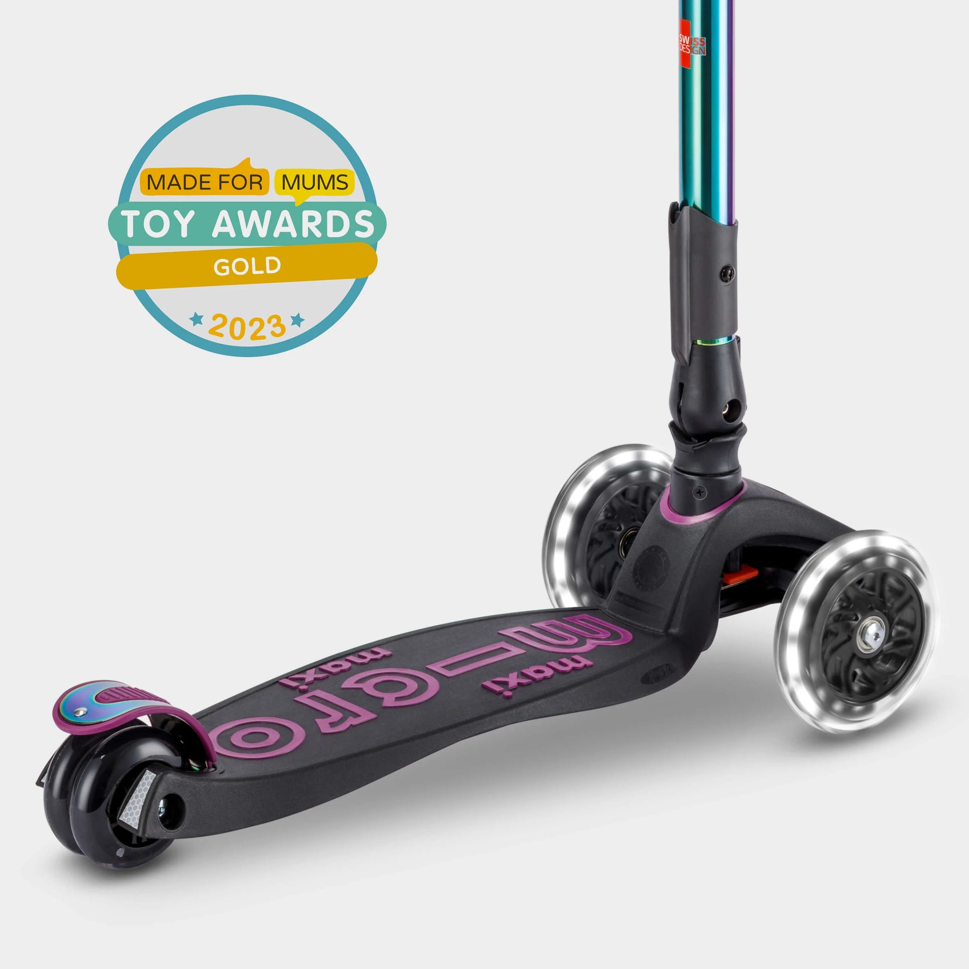 Built for children aged 5–12 who want to ride in comfort, move with confidence and stand out as they go. This is the pinnacle of the Maxi range, combining award winning three wheeled engineering with a striking Neochrome finish that shifts colour as it catches the light. No other scooter looks like it.