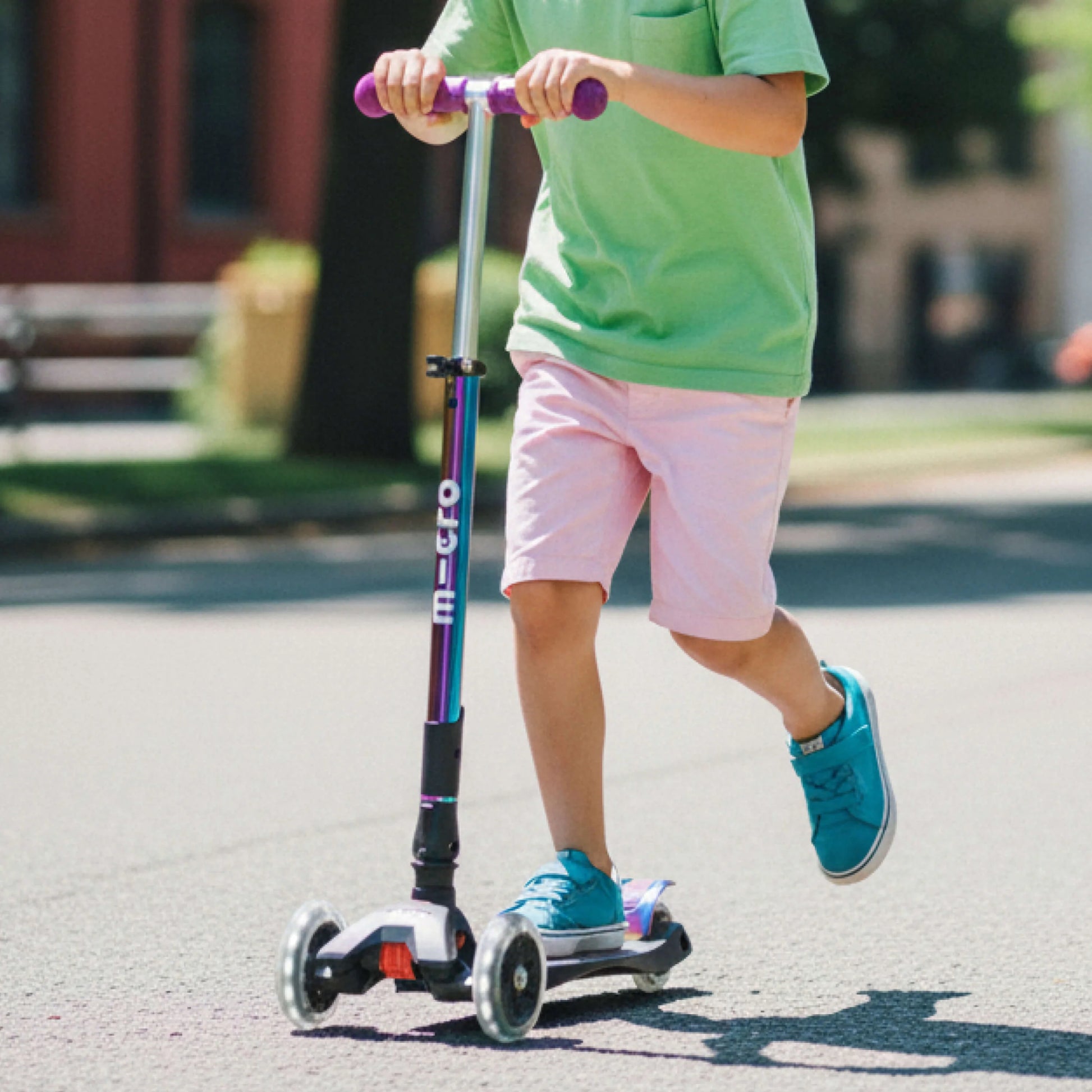 The Maxi Micro Foldable Neochrome LED is made for kids who want it all – the smoothest ride, the boldest look and the most advanced design. A scooter that turns heads, sparks pride and elevates every journey.
