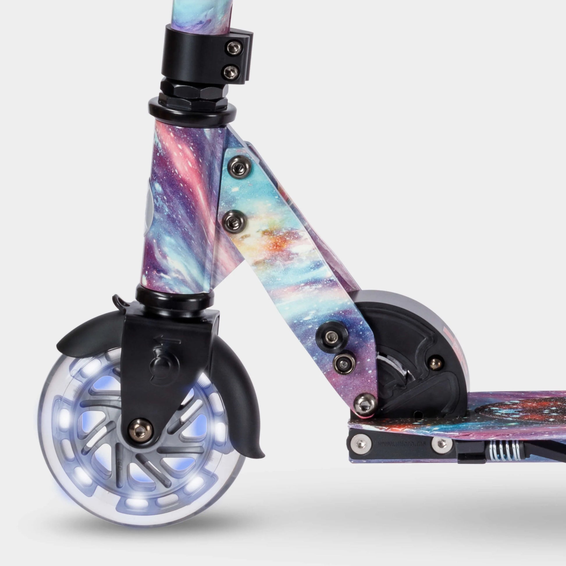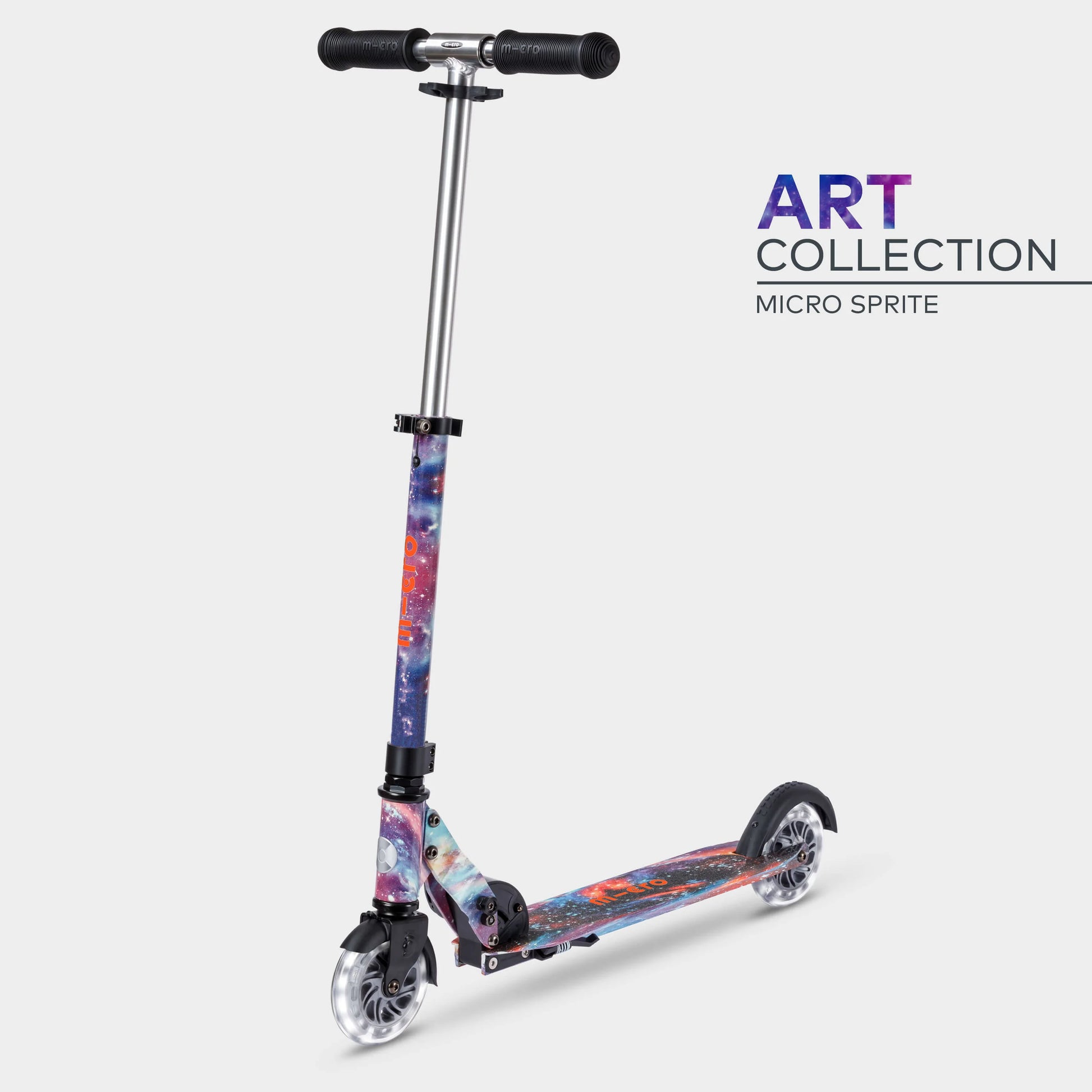 Our best-selling 2 wheeled scooter now comes with LED light-up front and back wheels. Our smart LED tech uses induction energy to turn the power kids create as they scoot into bright white light. No batteries. No fuss. Just a glow to light up the darkest evenings and brighten up the most ordinary days. Steers like a bike, and rides like a dream. Our agile Sprite puts smiles on faces as children enter the world of two-wheel scooting. Whether building up speed or negotiating obstacles, kids can do it with ease thanks to the Sprite's intelligent design. With adjustable handlebars for years of scooting fun. Lightweight aluminium frame for the ultimate agility. Perfectly sized footplate that's neither too big nor too small. Simple, secure fold and handy kickstand for on-the-go convenience. Featuring foam grips that are soft to the touch and incredibly long-lasting.