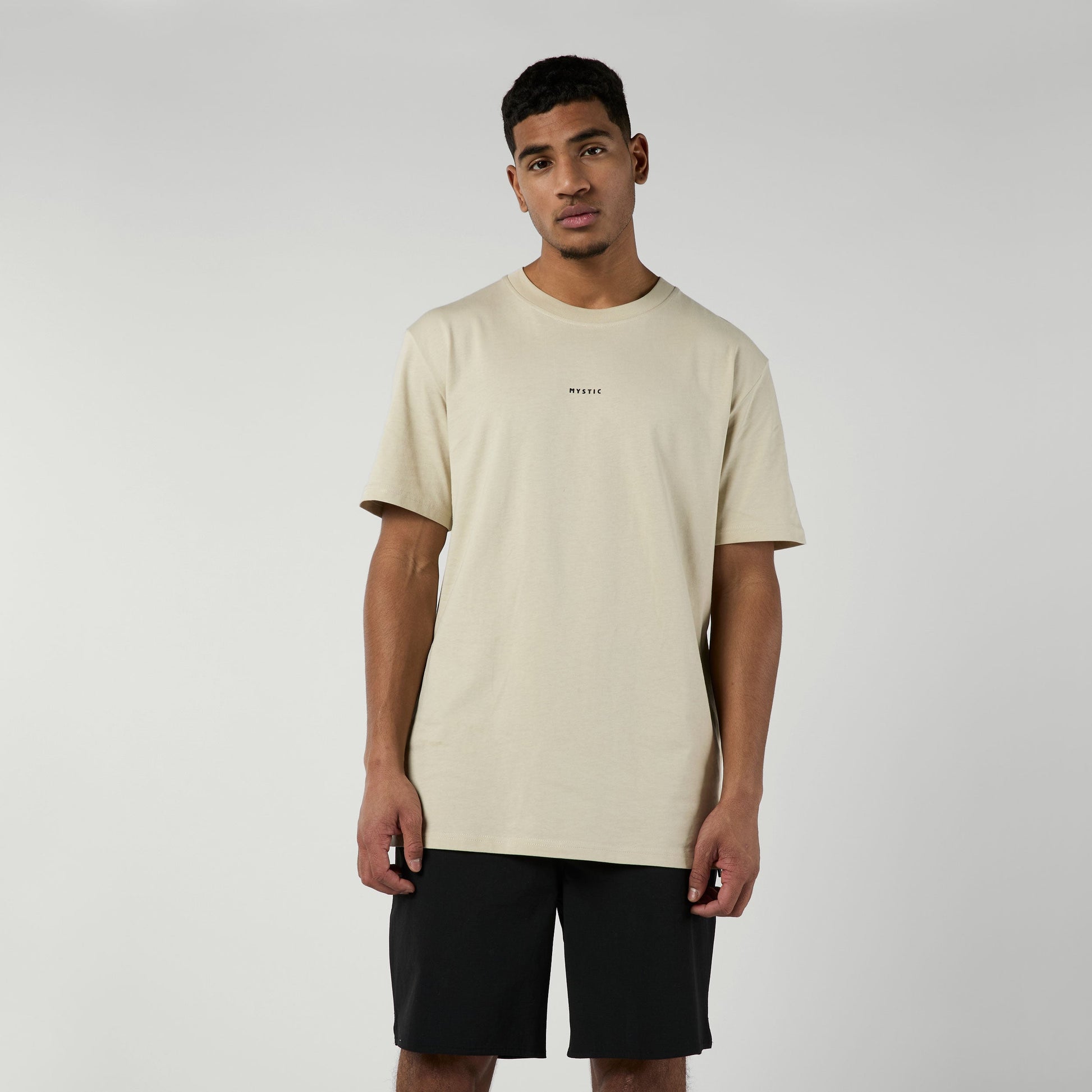A nod to our love for ocean photography, featuring a bold abstract photoprint on the back. Finished off with a Mystic logo up front and a regular cut. The Region Tee comes in black or sand, options that work with all outfits year-round.