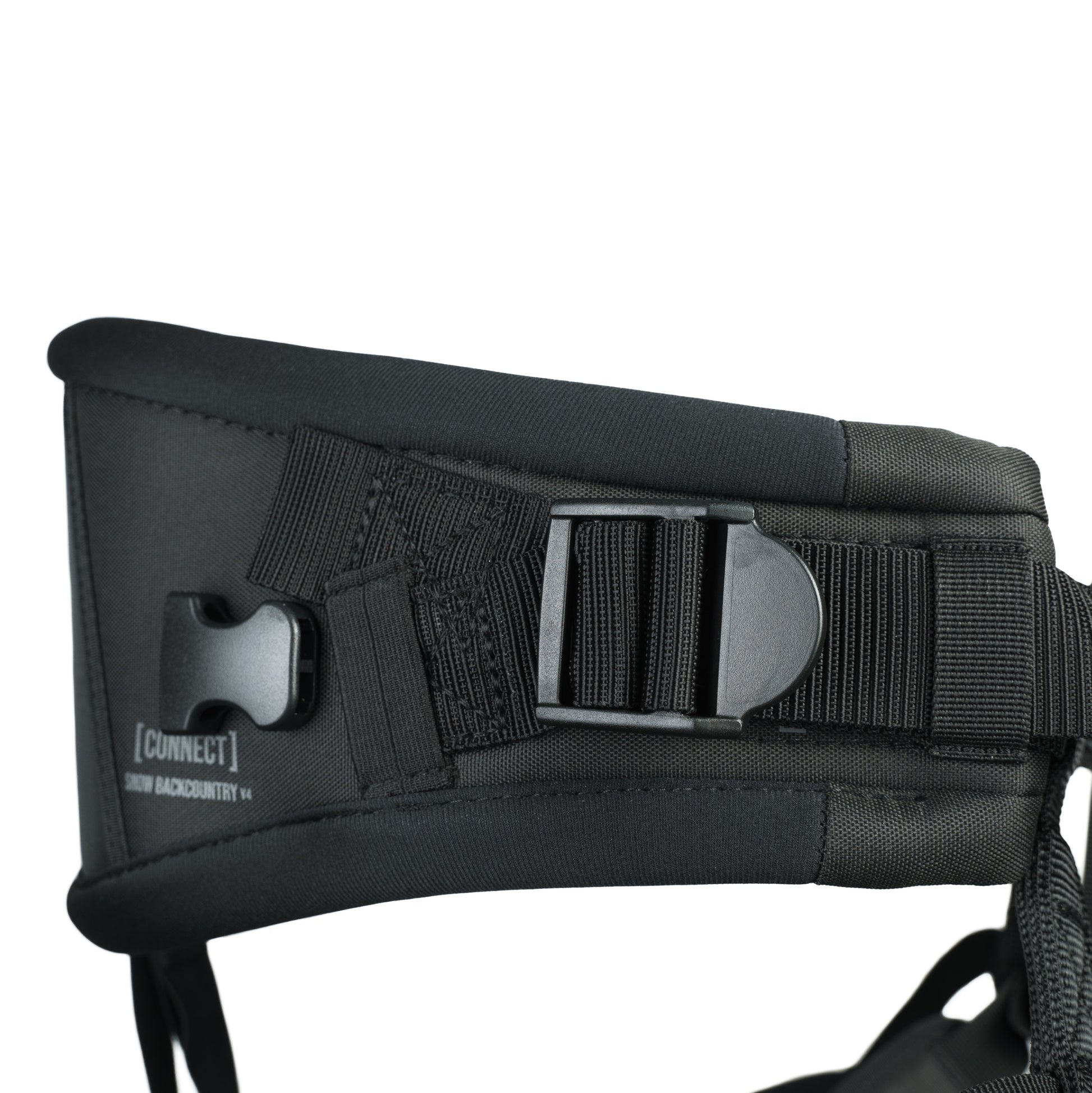 The Connect Snow Backcountry harness is designed similarly to a rock climbing harness, ensuring it will not ride up while riding.