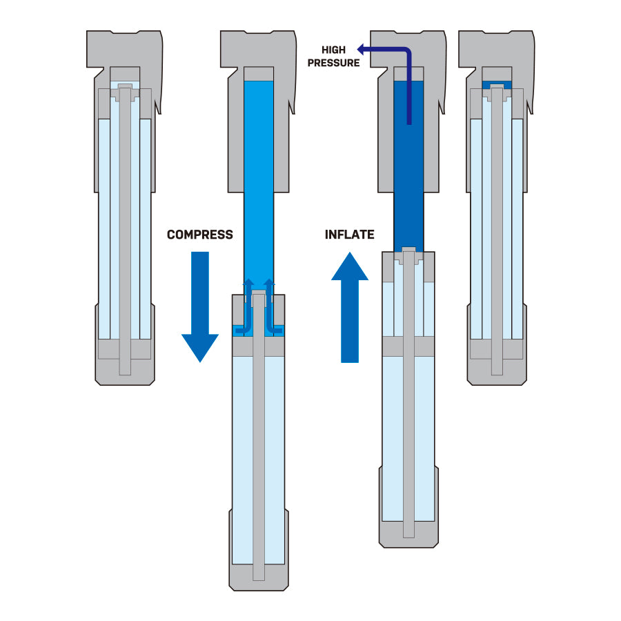Mountain TT Twin Turbo pump fills both large volume fat bike tires and higher pressure MTB tires, as well as gravel, touring, trekking bike tires with ease. TwinTurbo technology uses both strokes to compress air to deliver high pressure output and saves time and effort. Integrated dust cap keeps pump head clean and thumb lock lever ensures air-tight seal.